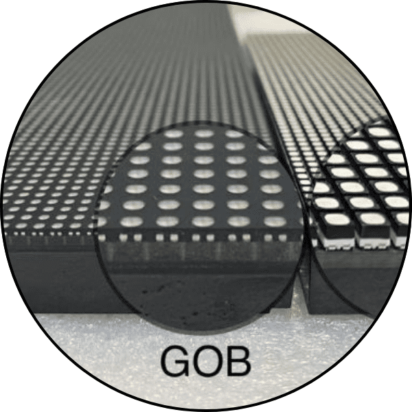 מערכת הגנה עם רשת בלתי נראית – שומרים על הלדים, מבלי לפגוע בתצוגה המסכים שלנו מצוידים ב-רשת הגנה שקופה ובלתי נראית לעין, (GOB) שתפקידה להגן על נורות הלד מפני פגיעות פיזיות – מבלי לפגוע באיכות התמונה או בעוצמת הבהירות הפתרון הזה אידיאלי למסכים לד ולסביבות עמוסות פעילות – כמו רחובות ראשיים, אצטדיונים, קניונים ואתרי בנייה – שם יש סיכון לפגיעות ישירות בלדים